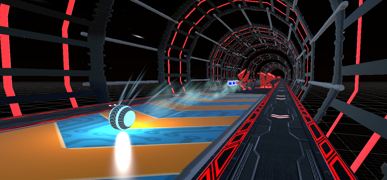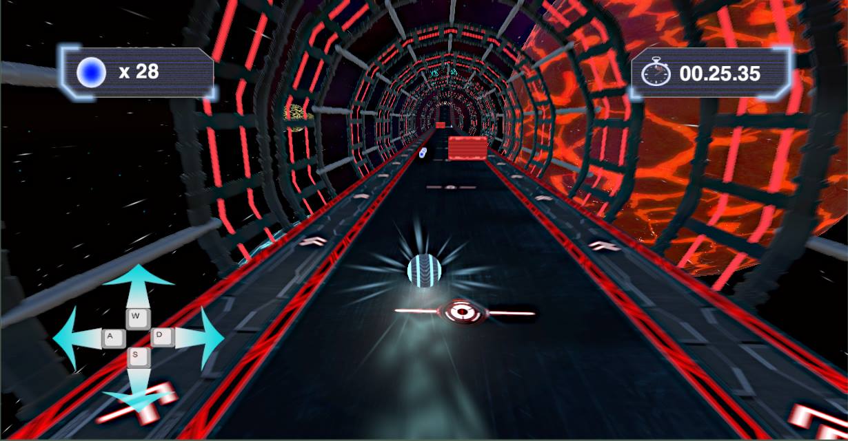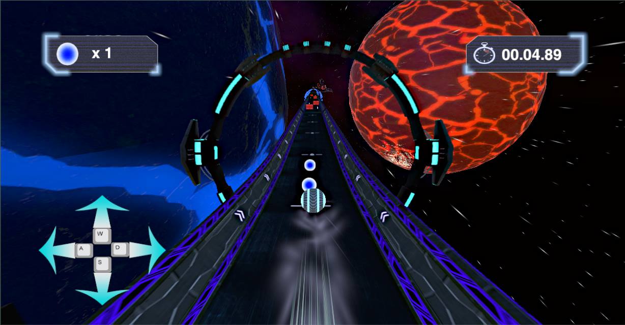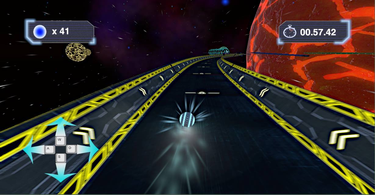 After a long process of brainstorming and test sessions the game developed to what it is. A fast action racer in space.